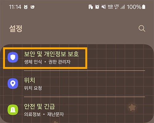 안드로이드 경우 [설정] 에 들어가면 [보안 및 개인정보 보호]가 있다. 참고로 스샷을 저렇게 찍어서 찍어서 그렇지 바로 보이지 않기에 스크롤을 내려 보면 있다.