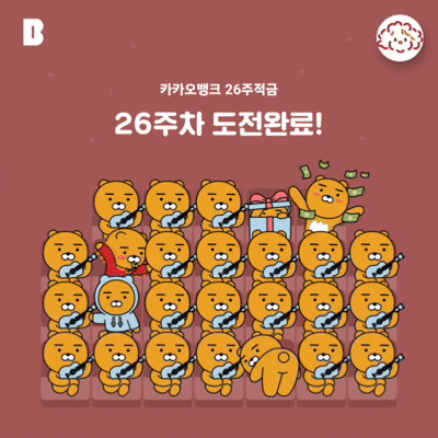카카오뱅크 26주 with이마트, with마켓컬리, with카카오페이지, with오늘의집, with카카오톡, withGS칼텍스, with교촌치킨, with우리동네GS, with카카오웹툰, with선물하기럭스, with제주항공,롯데면세점, with 투썸플레이스, with 현대백화점그룹, with 홈플러스