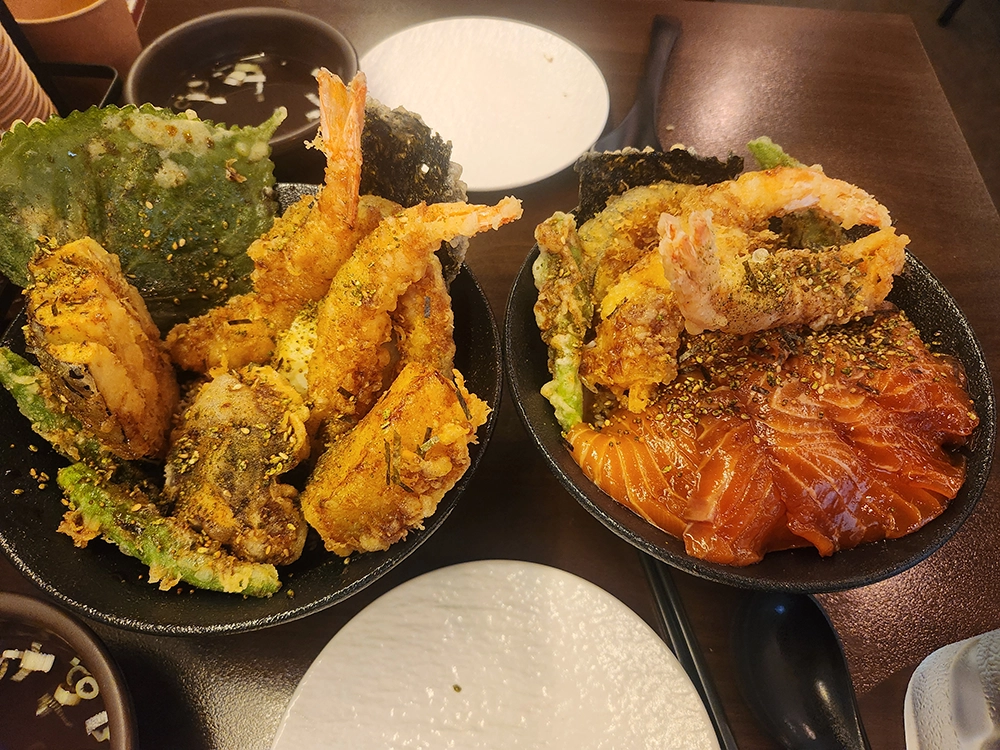 근처 덴포에서 덴포텐동과 사몬텐동 주문해서 먹고~